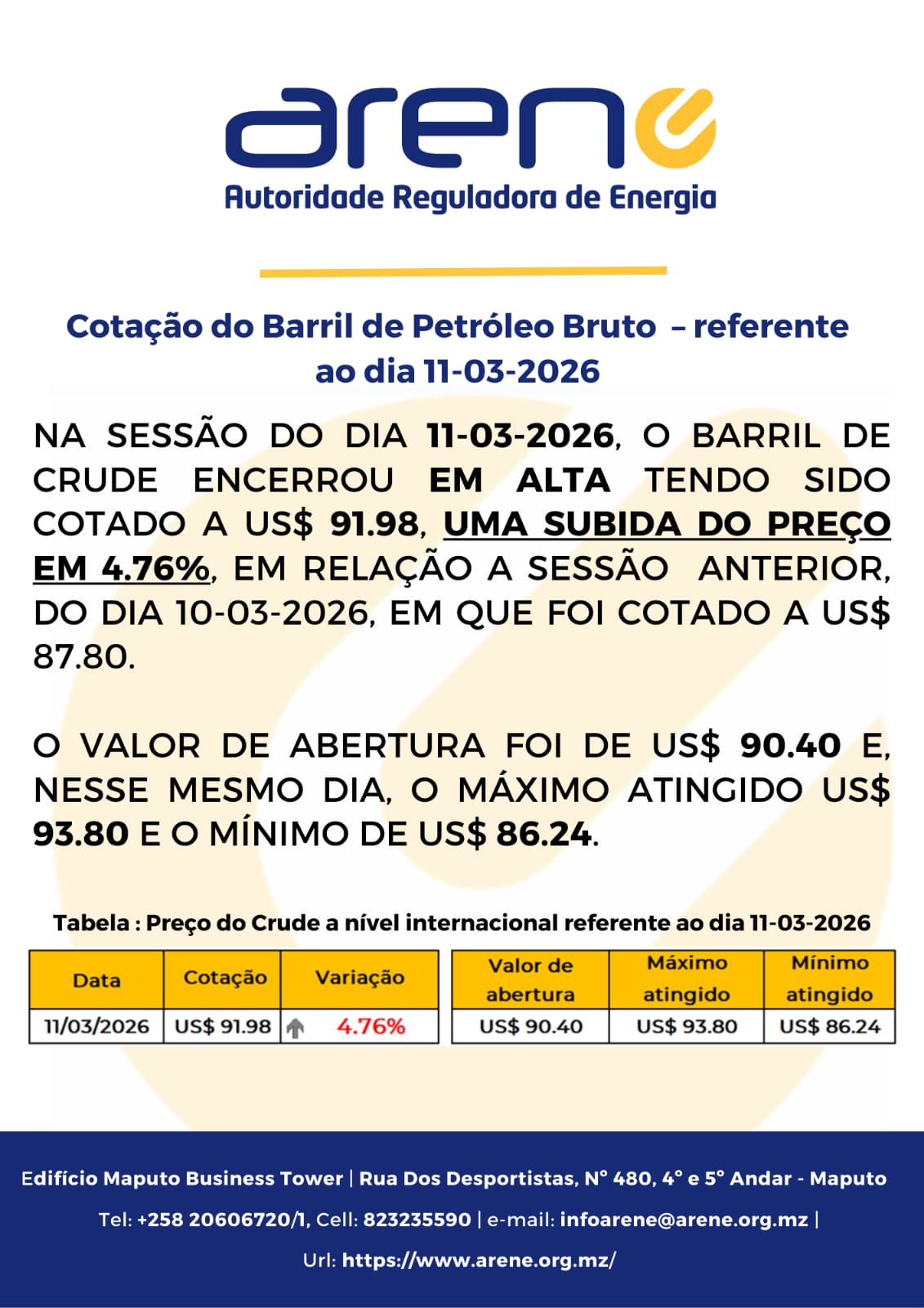 Cotação do Barril de Petróleo Bruto – referente ao dia 11-03-2026