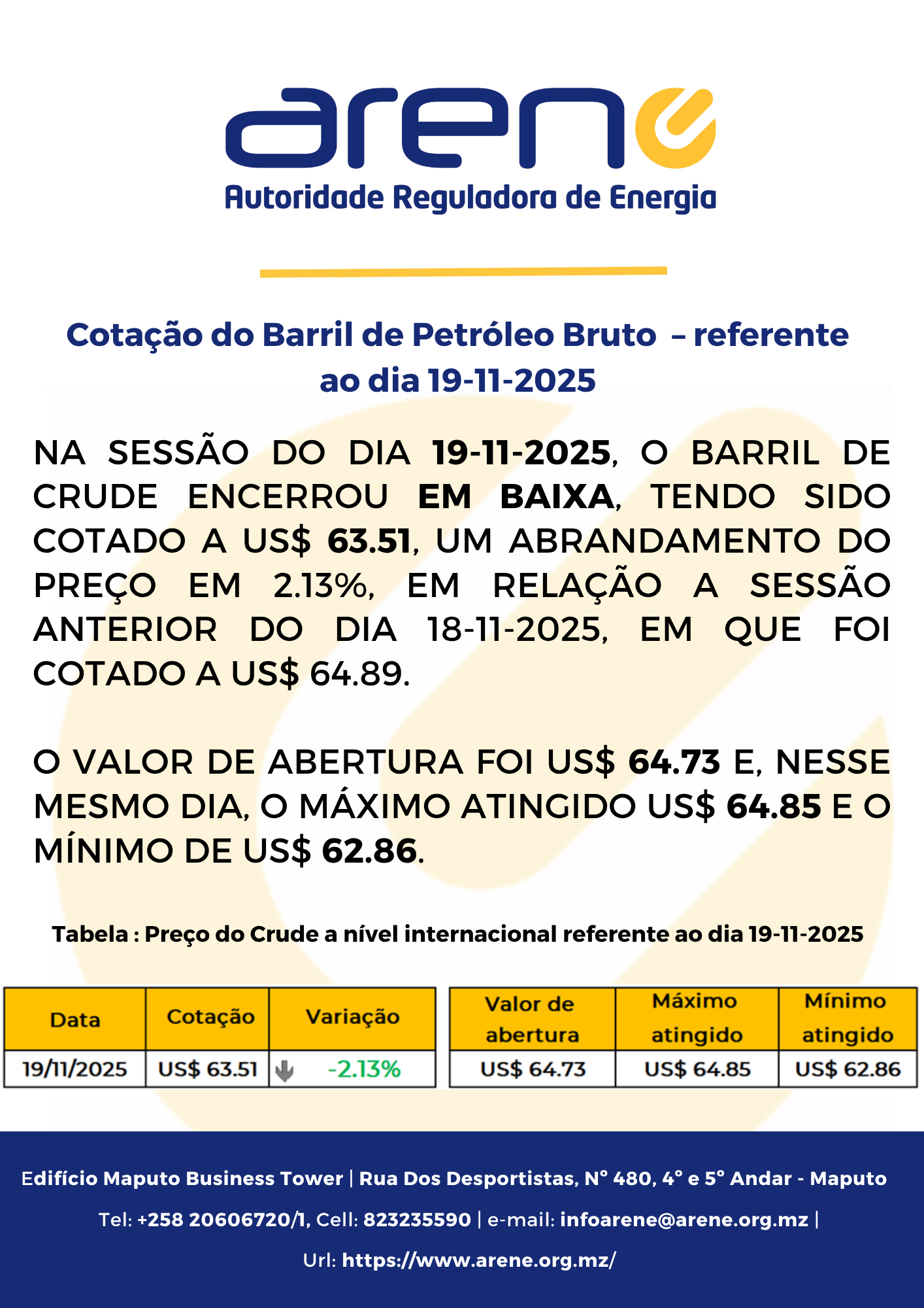 Cotação do Barril de Petróleo Bruto – referente ao dia 19 11 2025